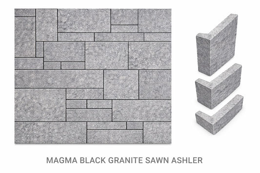 Magma Black Granite Sawn Ashlar is a premium natural stone known for its deep black base and subtle mineral patterns that add a bold, elegant character to any space. Precision-sawn for clean edges and uniform thickness, this granite delivers a modern yet timeless appeal. Highly durable and weather-resistant, Magma Black...